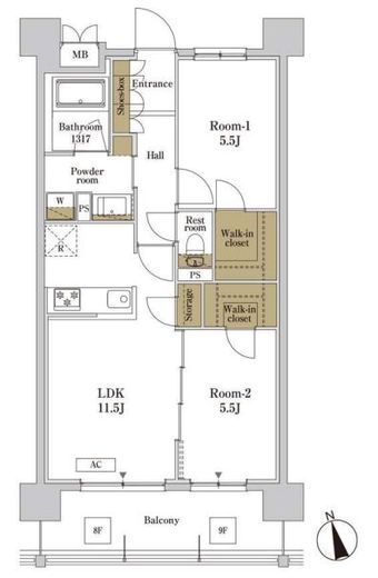 | 間取り | 2LDK+WIC | 専有面積 | 55.43m2 |