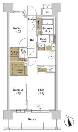 | 間取り | 2LDK+WIC | 専有面積 | 46.61m2 |