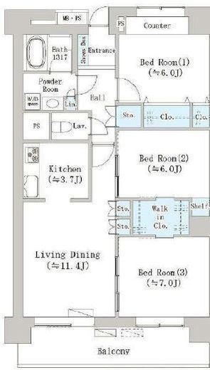 間取り | 3LDK+WIC | 専有面積 | 81.5m2 |