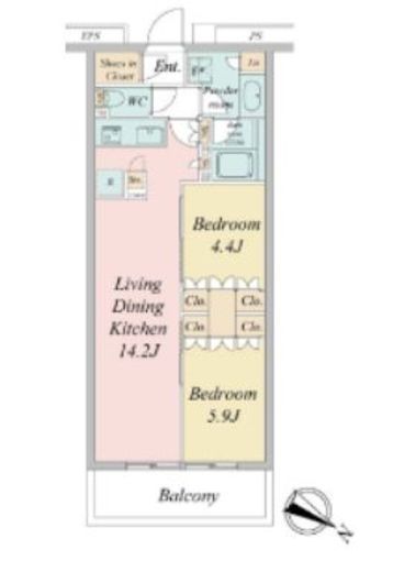 間取り | 2LDK | 専有面積 | 52.49m2 |