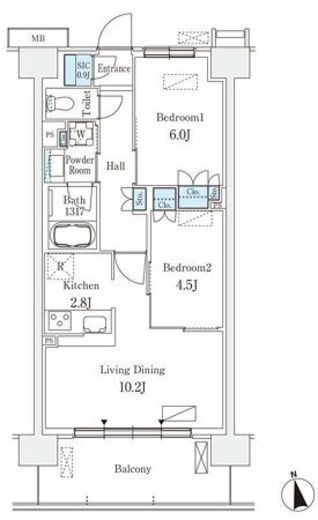 間取り | 2LDK | 専有面積 | 54.6m2 |
