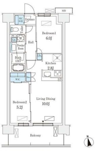 間取り | 2LDK+WIC+SIC | 専有面積 | 54.6m2 |