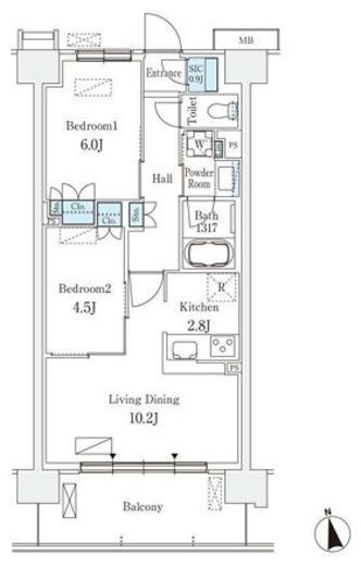 間取り | 2LDK | 専有面積 | 54.6m2 |