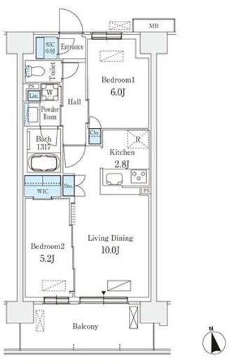 間取り | 2LDK+WIC+SIC | 専有面積 | 54.6m2 |