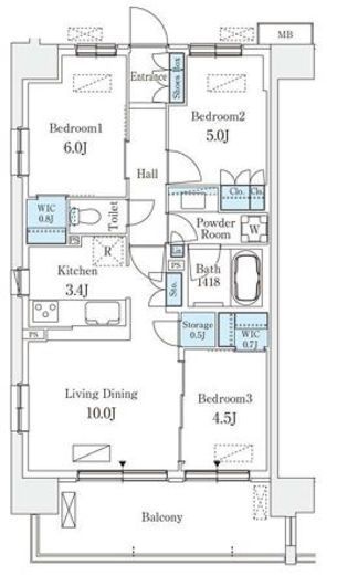 間取り | 3LDK+WIC | 専有面積 | 65.1m2 |