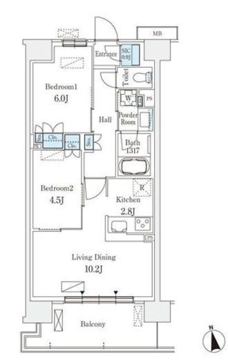 | 間取り | 2LDK+SIC | 専有面積 | 54.6m2 |