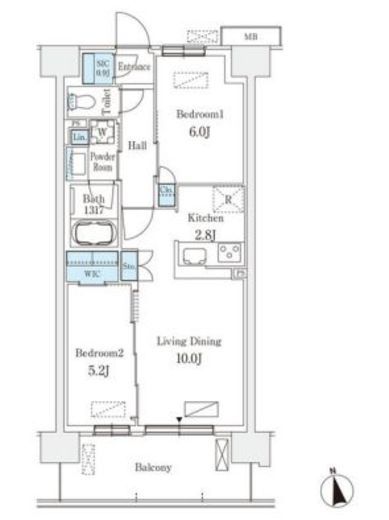| 間取り | 2LDK+WIC+SIC | 専有面積 | 54.6m2 |