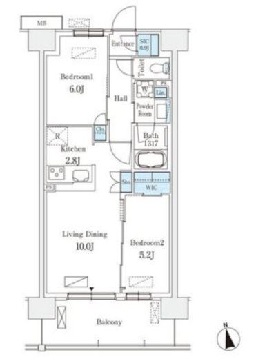 | 間取り | 2LDK+WIC+SIC | 専有面積 | 54.6m2 |