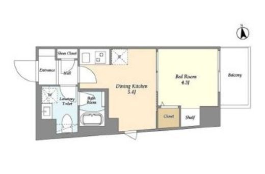 | 間取り | 1DK | 専有面積 | 25.24m2 |