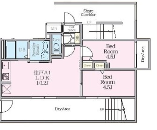 間取り | 2LDK | 専有面積 | 41.39m2 |