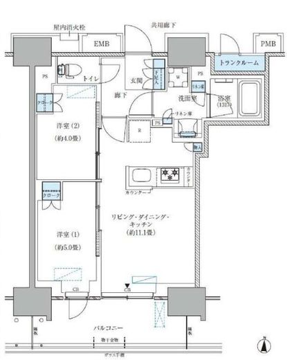 間取り | 2LDK | 専有面積 | 48.29m2 |