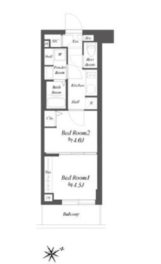 | 間取り | 2K | 専有面積 | 26.7m2 |