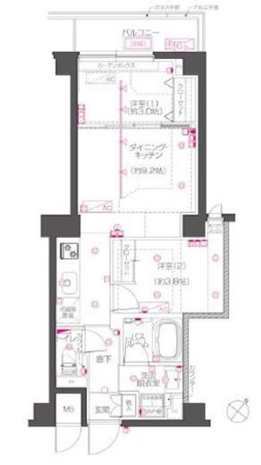 間取り | 2DK | 専有面積 | 38.66m2 |