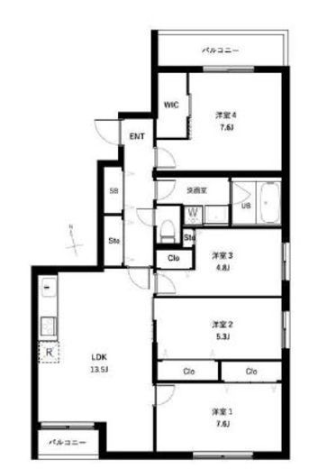 | 間取り | 4LDK+WIC | 専有面積 | 85.4m2 |