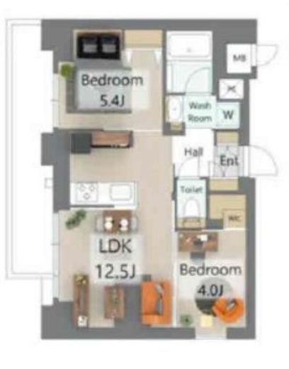 | 間取り | 2LDK+WIC | 専有面積 | 49.61m2 |