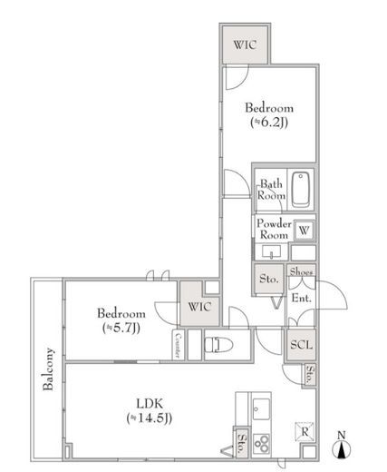 | 間取り | 2LDK+WIC | 専有面積 | 65.29m2 |