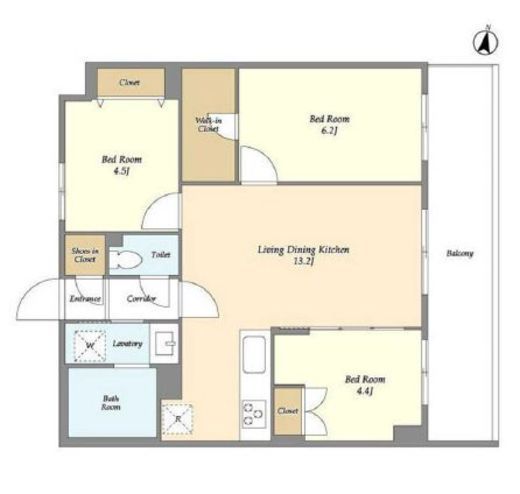 | 間取り | 3LDK+WIC+SIC | 専有面積 | 62.15m2 |