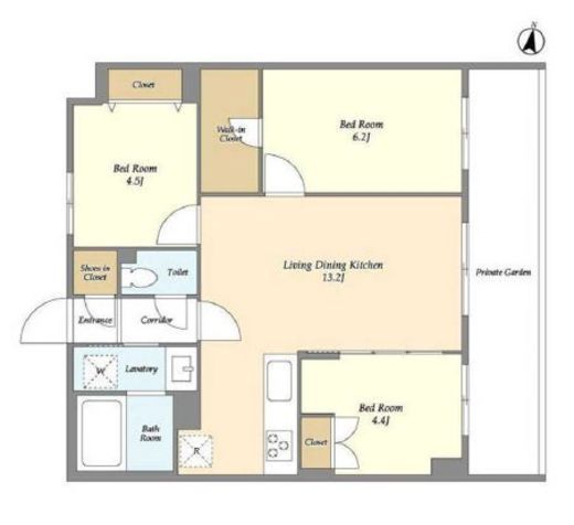 | 間取り | 3LDK+WIC+SIC | 専有面積 | 62.15m2 |