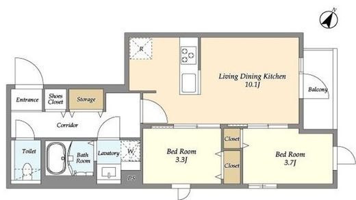 | 間取り | 2LDK | 専有面積 | 43.79m2 |