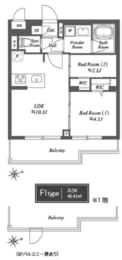 | 間取り | 2LDK+WIC | 専有面積 | 40.42m2 |