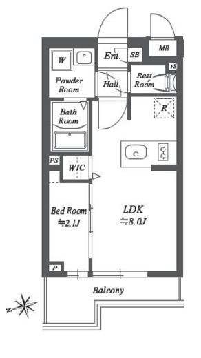 | 間取り | 1LDK+WIC | 専有面積 | 25.34m2 |