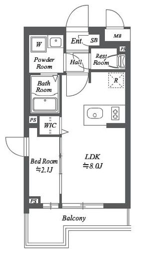 | 間取り | 1LDK+WIC | 専有面積 | 25.34m2 |