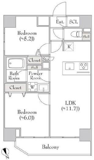 | 間取り | 2LDK | 専有面積 | 51.24m2 |