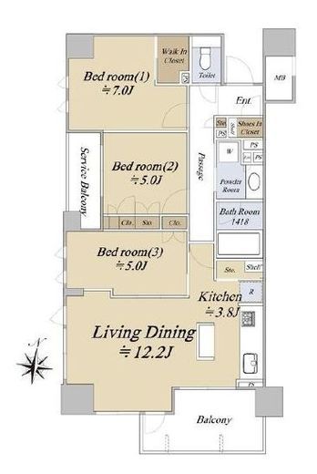 | 間取り | 3LDK+WIC | 専有面積 | 75m2 |