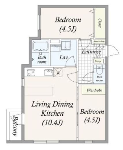 | 間取り | 2LDK | 専有面積 | 44.79m2 |