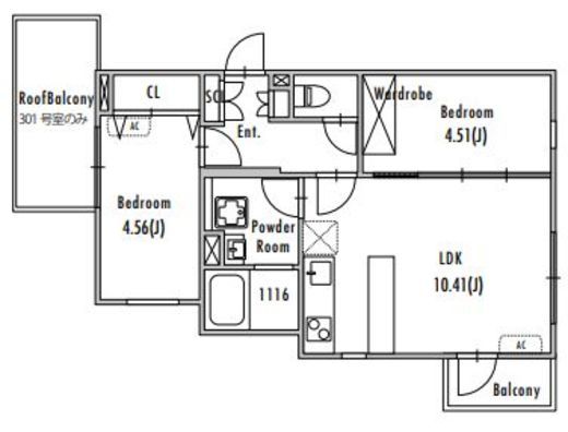 | 間取り | 2LDK | 専有面積 | 44.79m2 |
