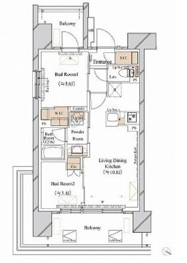 | 間取り | 2LDK | 専有面積 | 43.46m2 |