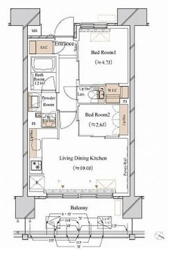 | 間取り | 2LDK+WIC+SIC | 専有面積 | 40.39m2 |