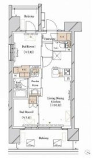 | 間取り | 2LDK+WIC+SIC | 専有面積 | 43.46m2 |
