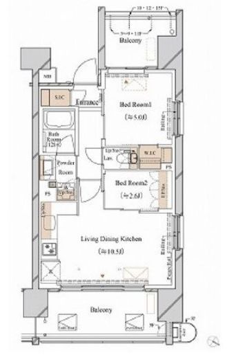 | 間取り | 2LDK+WIC+SIC | 専有面積 | 42.03m2 |
