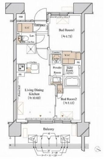 | 間取り | 2LDK+WIC+SIC | 専有面積 | 40.35m2 |