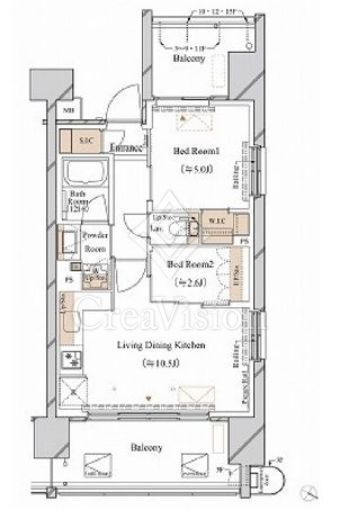 | 間取り | 2LDK+WIC+SIC | 専有面積 | 42.03m2 |