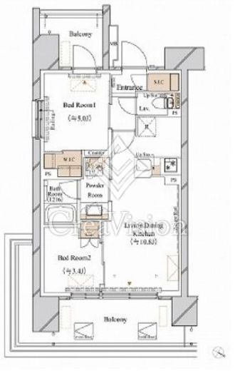 | 間取り | 2LDK+WIC+SIC | 専有面積 | 43.46m2 |