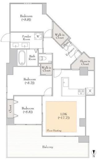 | 間取り | 3LDK+WIC+SIC | 専有面積 | 88.4m2 |