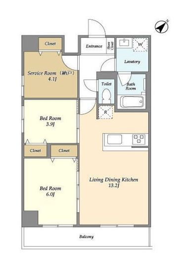 | 間取り | 2SLDK | 専有面積 | 61.07m2 |
