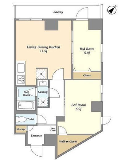 | 間取り | 2LDK+WIC | 専有面積 | 56.95m2 |