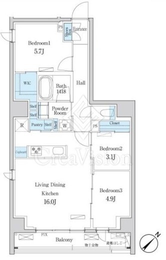 | 間取り | 3LDK+WIC | 専有面積 | 70.34m2 |