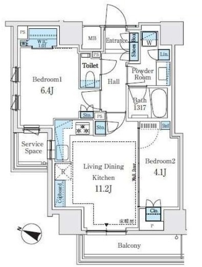 | 間取り | 2LDK+WIC | 専有面積 | 54.76m2 |