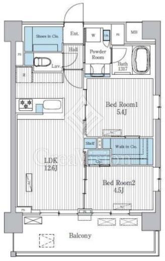 | 間取り | 2LDK | 専有面積 | 54.6m2 |