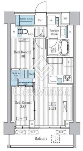 | 間取り | 2LDK+WIC+SIC | 専有面積 | 45.11m2 |