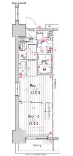 | 間取り | 2K | 専有面積 | 25.38m2 |