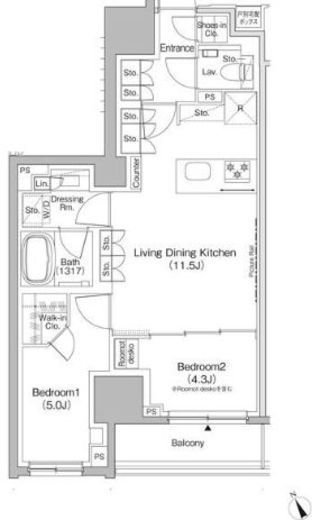 | 間取り | 2LDK+WIC+SIC | 専有面積 | 51.14m2 |