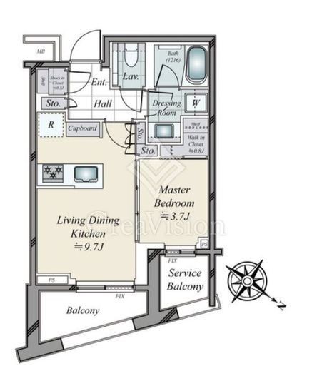 | 間取り | 1LDK+WIC+SIC | 専有面積 | 35.01m2 |