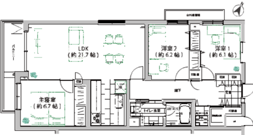 | 間取り | 3LDK | 専有面積 | 90.77m2 |