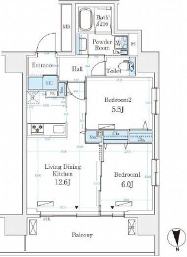 | 間取り | 2LDK+SIC | 専有面積 | 56.49m2 |