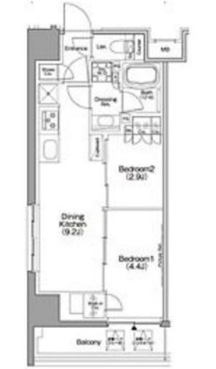 | 間取り | 2DK | 専有面積 | 39.88m2 |